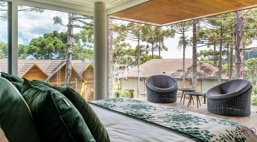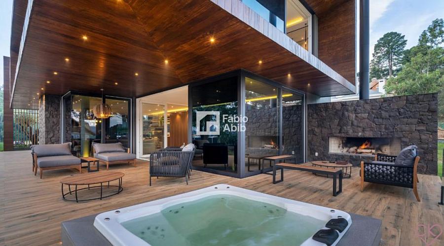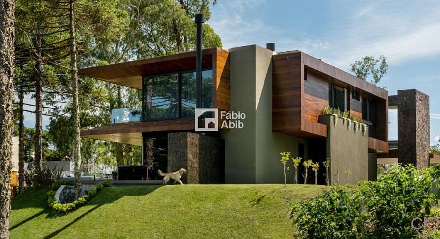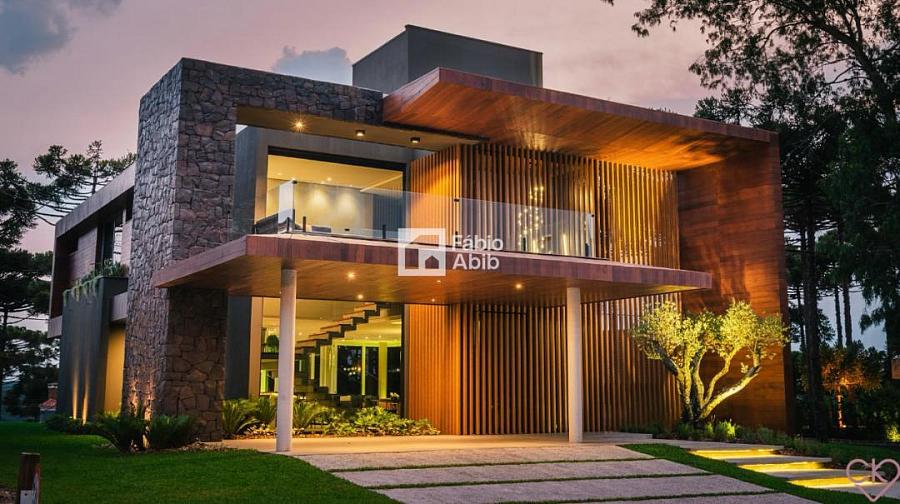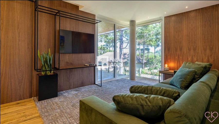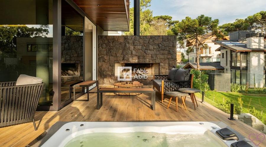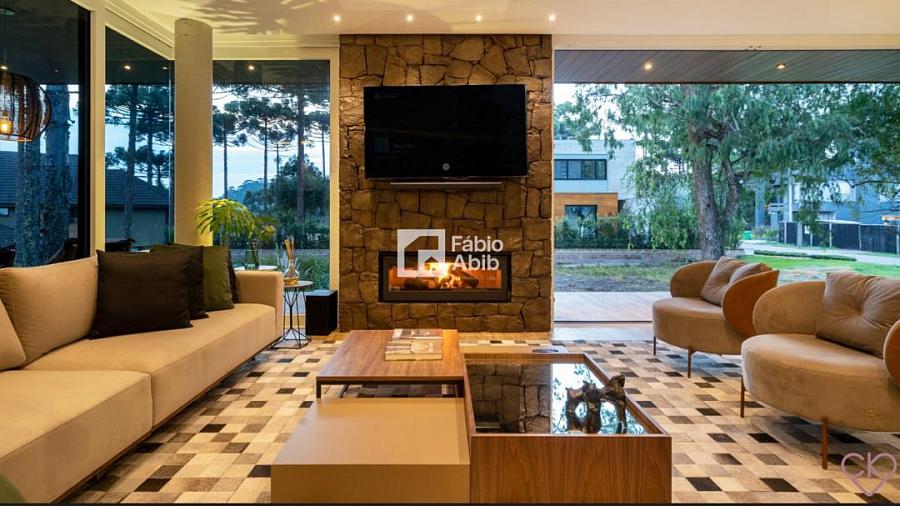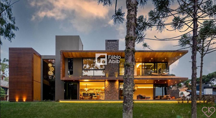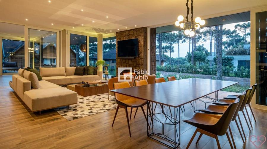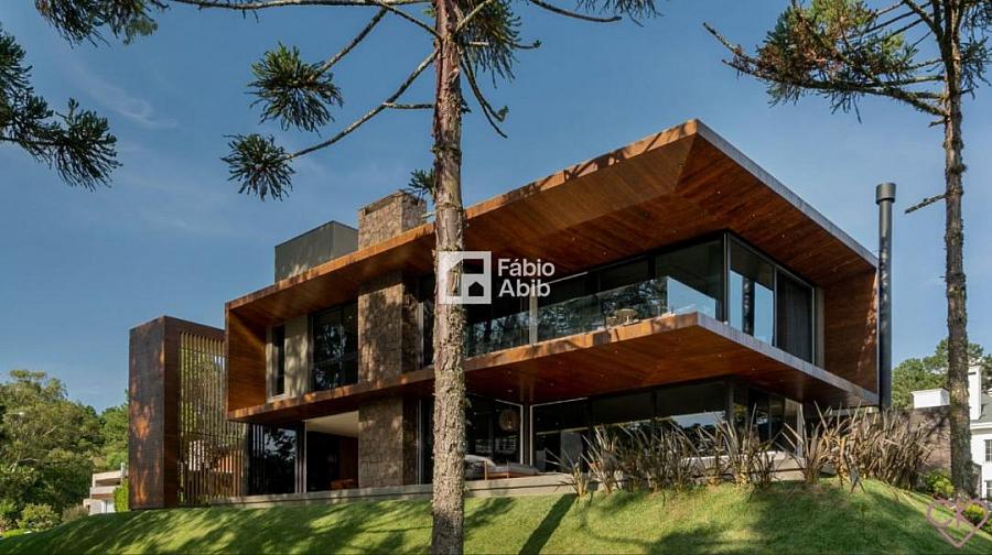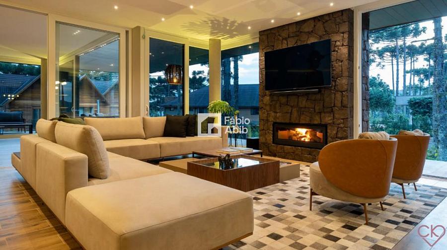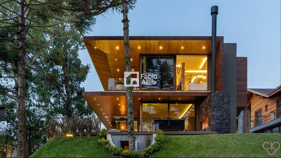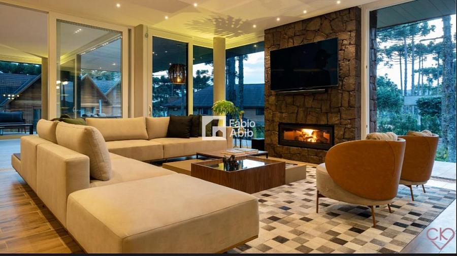 Aspen Mountain, um bairro privado dentro da cidade turística mais desejada da Serra gaúcha, Gramado RS. Casa de altíssimo padrão, com área construída de 588,33 m ² em amplo terreno de 800 m ² com frondosas araucárias;